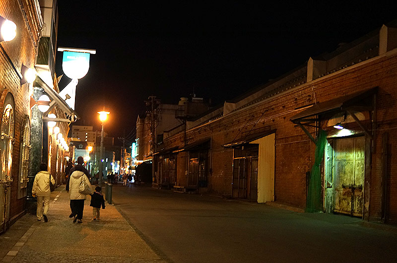 同じく赤レンガ倉庫群。こちらは普段あまり人が歩かない通り。個人的にはひっそりしているのと、倉庫本来の役割を果たしている建物が並んでいるので好みの場所。しかし、家族連れが歩いているのを見るとやっぱりうれしい。
